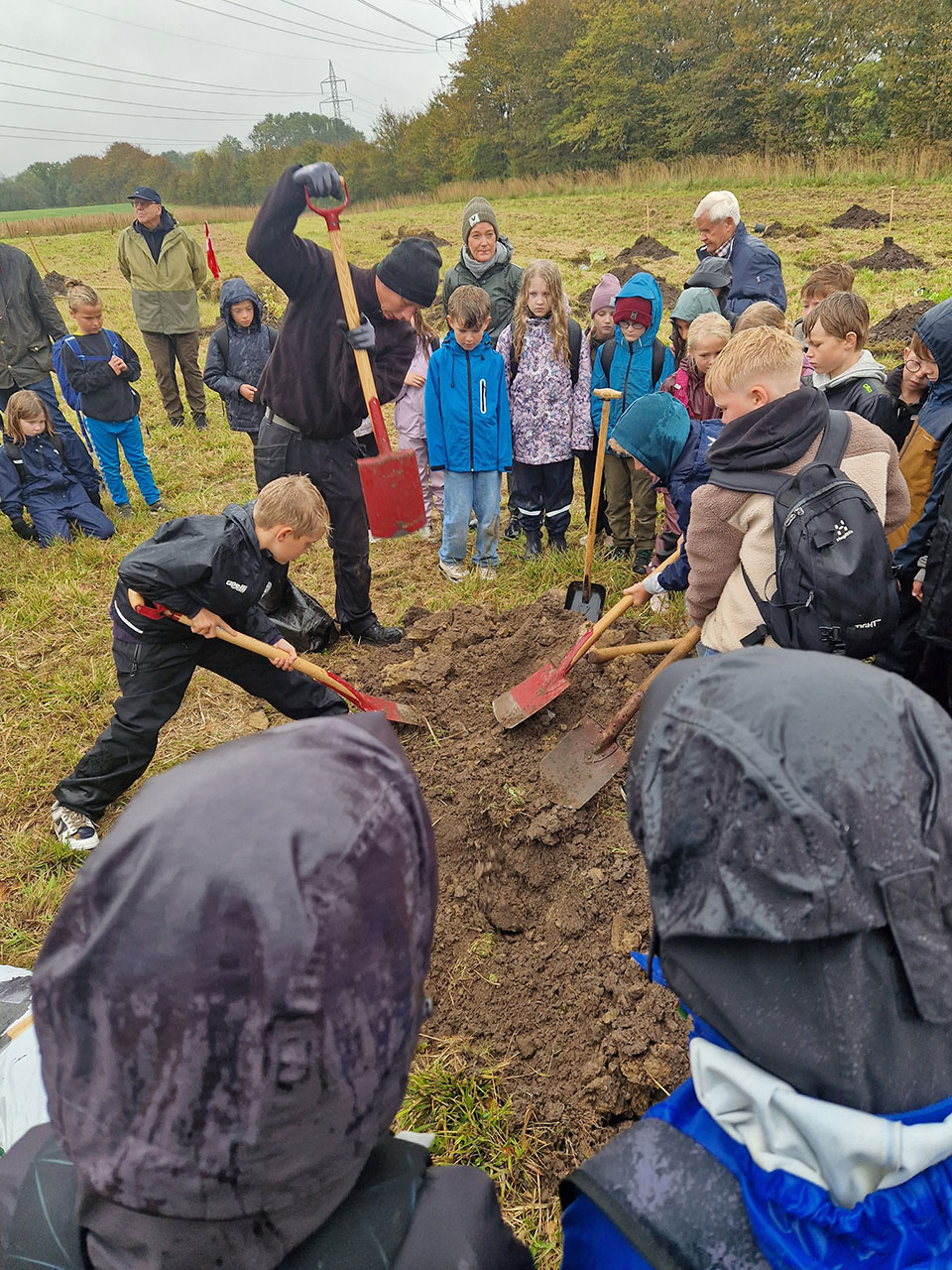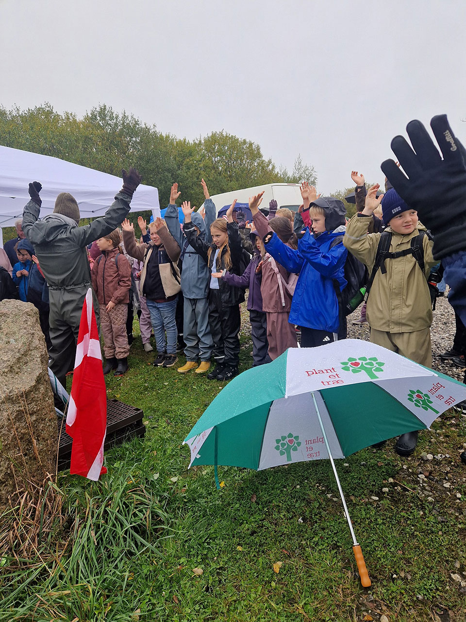 50 x 3. klasses elever fra Skødstrup Skole plantede i dag deres gratis frugtlund i silende regn ved Skødstrup Søndersø. Frugtlunden var doneret af Plant et Træ. Vi havde en rigtig plante-fest med flag fra flag-allé og lokal hjælp til at få alt transporteret til plantestedet. Børnene knoklede til den helt store guldmedalje med den tunge og våde jord. Super indsats af alle og tak for en dejlig formiddag.