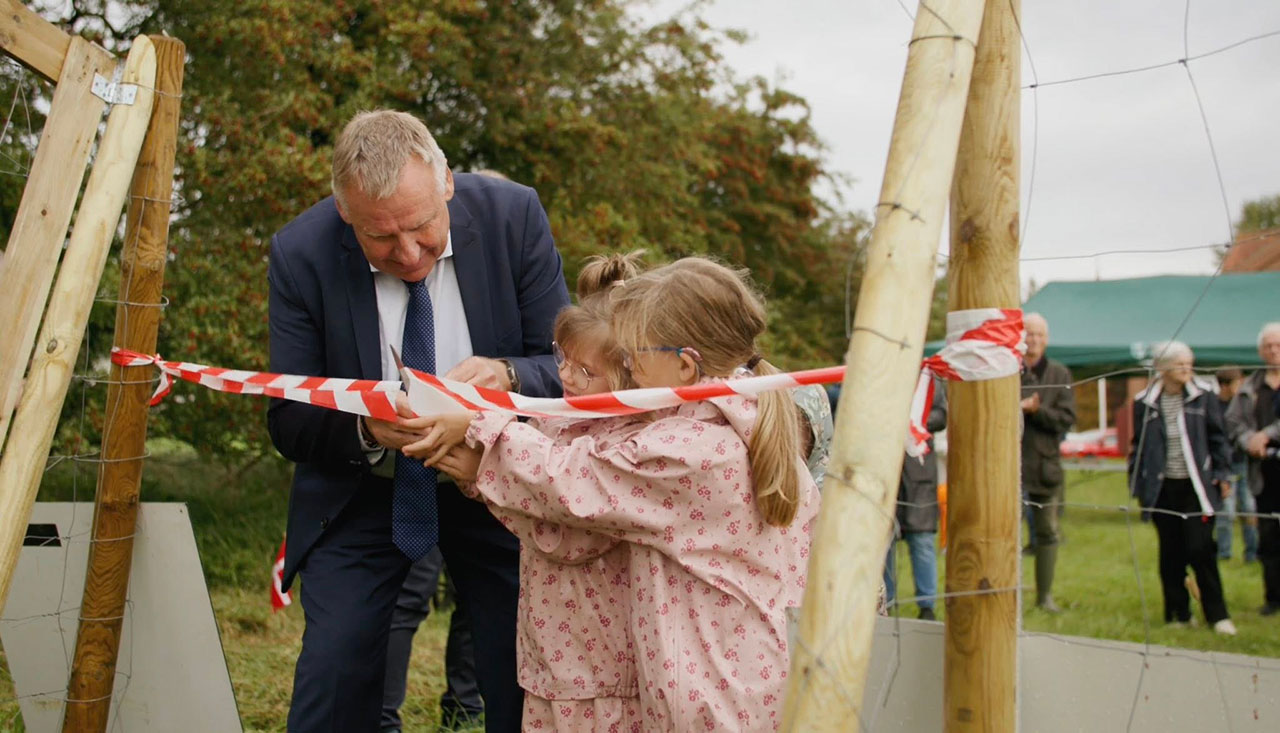 Ved fælles hjælp sammen med lokale børn blev der plantet træer i Gerning i Favrskov Kommune og Gernings nye bynære skov blev indviet.