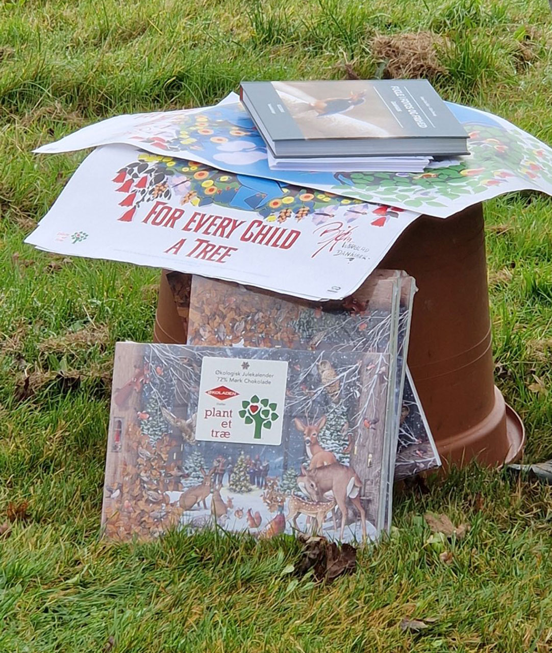 Efter plantning var der Plant et Træ’s julekalender, Bjørn Wiinblad plakater og plantningsdiplomer til alle træ-købere.