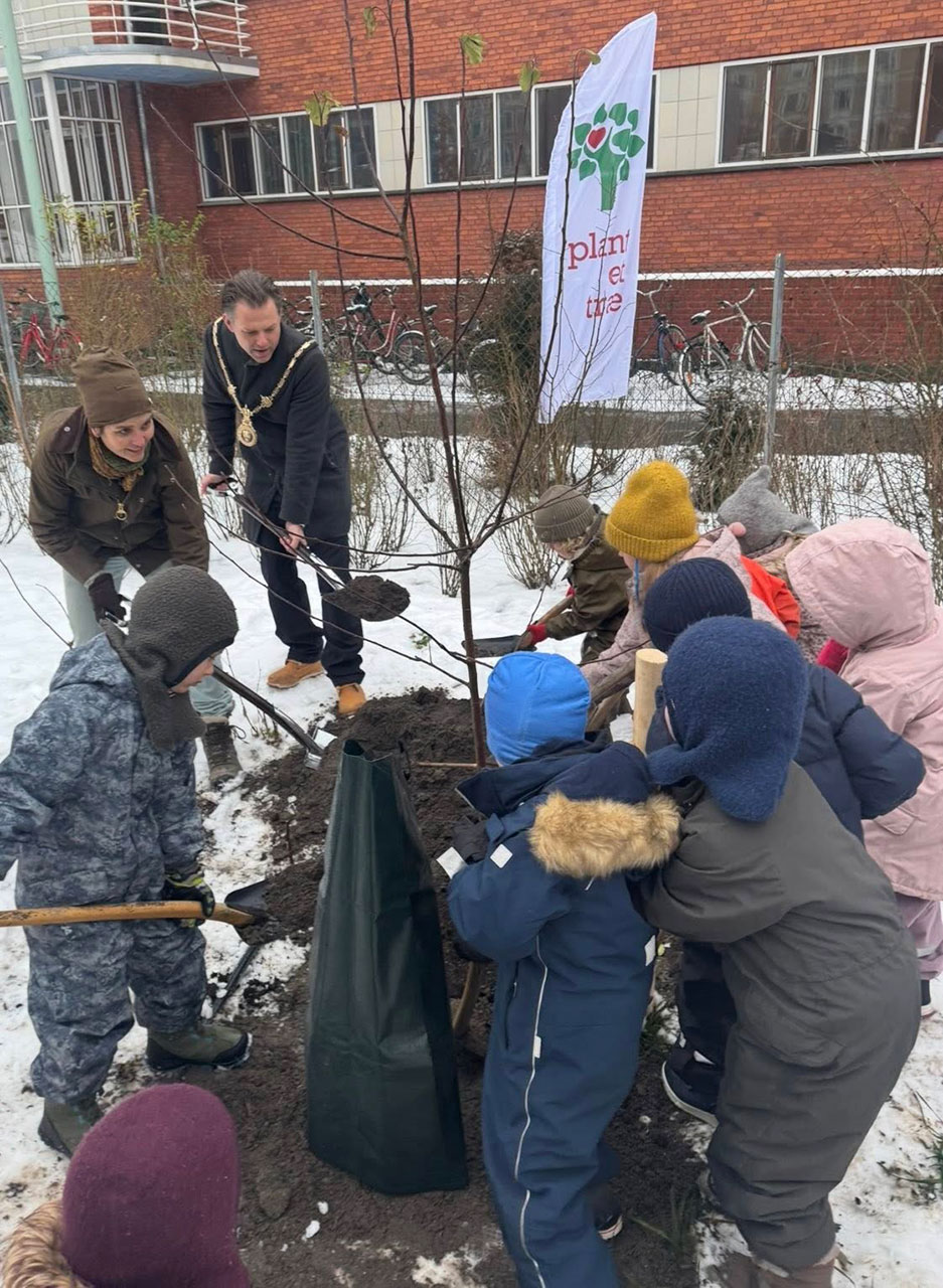 Plantningsfriske lokale børn fra børnehaven Eventyrhuset på Frederiksberg, plantede i dag 4 æbletræer ved Frederiksberg Rådhus. De unge mennesker fik assistance af borgmester i Frederiksberg Kommune Michael Vinfeldt, 1. viceborgmester Lone Loklindt og Plant et Træ’s næstformand Mimi Hvass og Brian Holm.